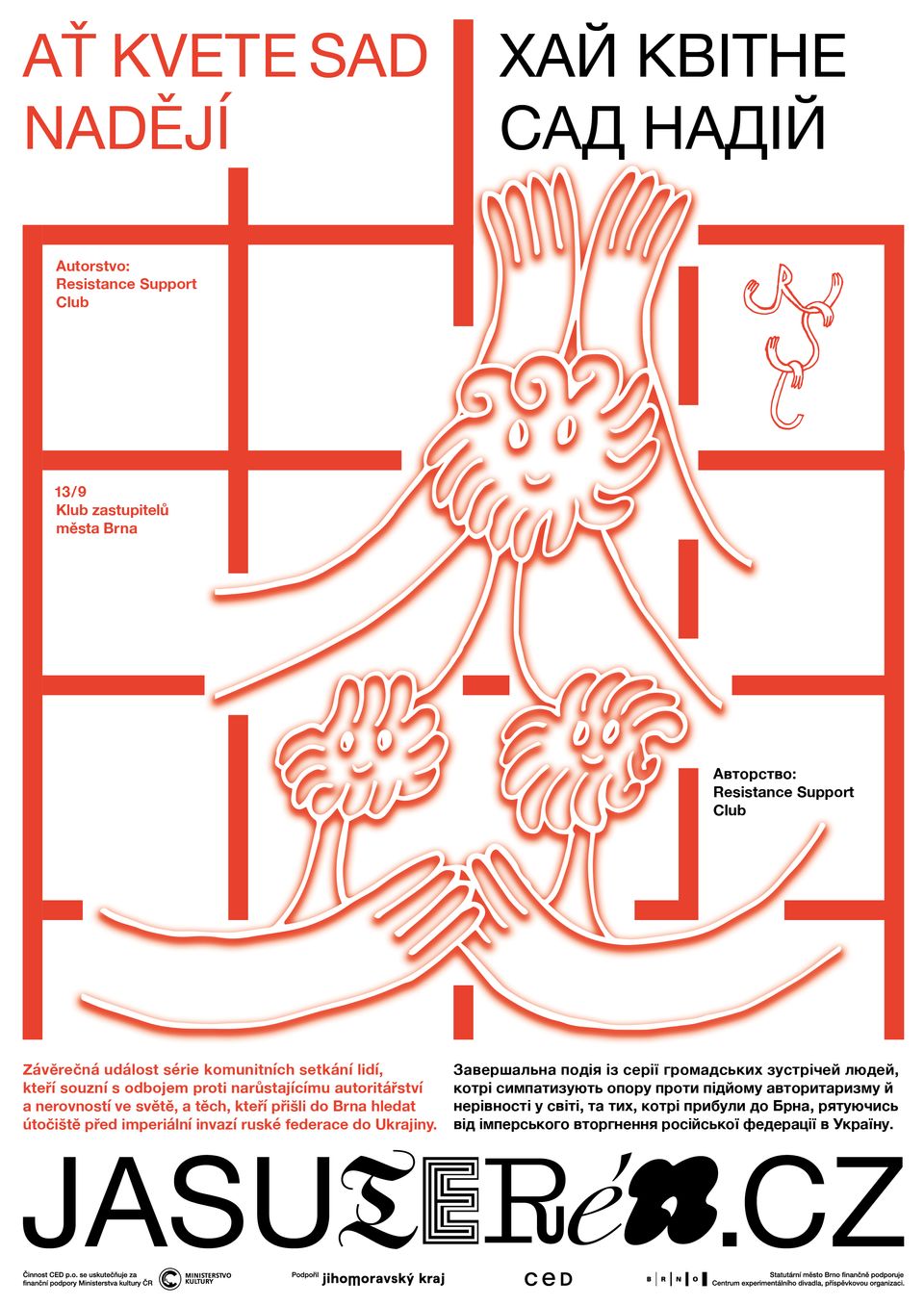 //Запрошуємо на завершальну подію з проєкту громадських зустрічей людей, котрі симпатизують опору проти авторитаризму й нерівності у світі, та тих, котрі прибули до Брна, рятуючись від імперського вторгнення російської федерації в Україну. Захід організовує Terén у співпраці з колективом Resistance Support Club (RSC).