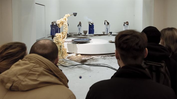 Součástí prezentace BIG LIGHT v Domě umění města Brna jsou performance, které probíhají každý den v otevírací době vždy po dvou hodinách (v 11, v 13, v 15 a v 17 hodin).