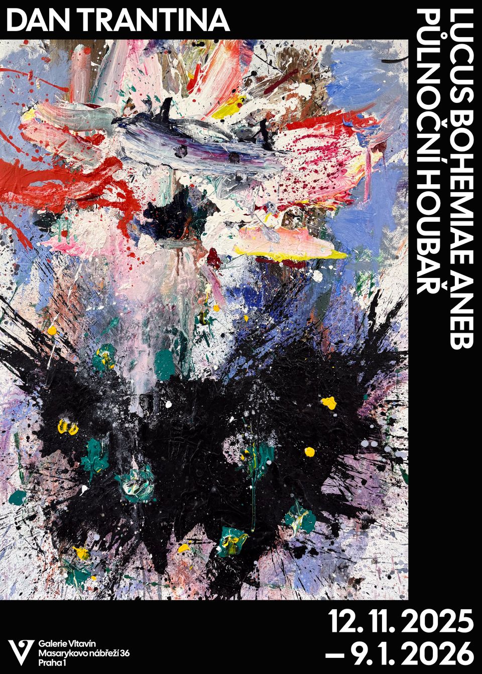 Výstava Lucus Bohemiae aneb Půlnoční houbař představuje novou sérii obrazů Dana Trantiny, v nichž autor s typickou expresivitou a suverénním gestem rozvíjí svůj osobitý malířský jazyk. Les jako archetypální prostor se stává dějištěm intenzivních vizuálních situací, v nichž se mísí instinkt, ironie i drsně pojatá imaginace. Trantinovy obrazy působí přímo, bez dekoru – jsou malířským terénem, kde se energie, hmota a barva střetávají v neklidném rytmu.