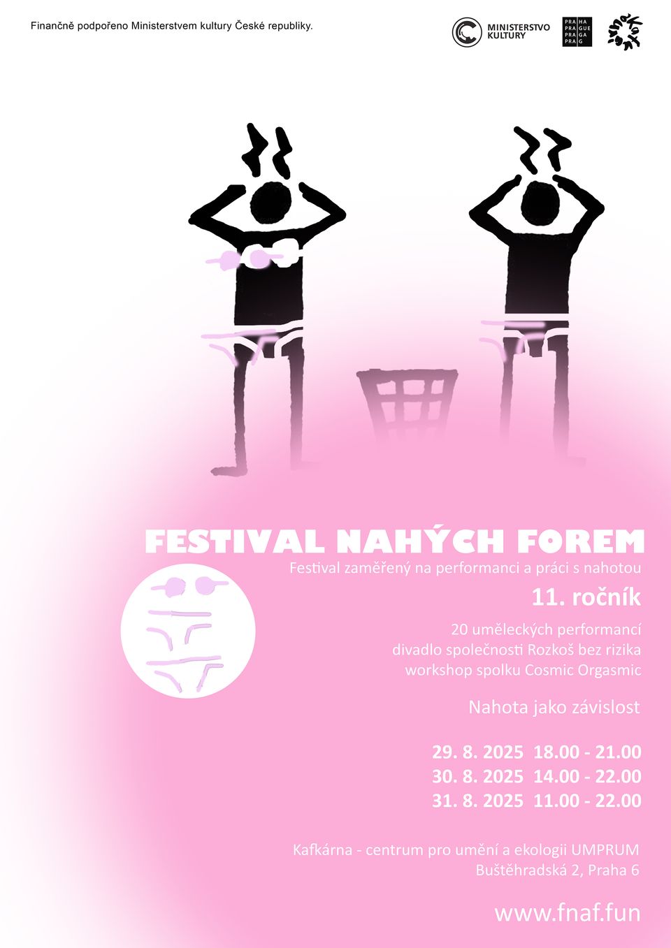 Festival nahých forem pokračuje svým 11. ročníkem s tématem Nahota jako závislost. V našem výkladu může znamenat zaměření na otázkou zdraví a rovnováhy, na otázku vyváženosti vztahu k vlastnímu tělu i k tělům ostatních.