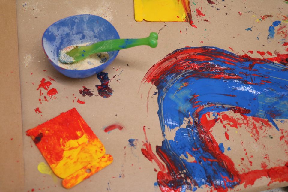 Herna pro děti k dílu Markéty Othové v její aktuální výstavě s lektorkami Blankou a Aničkou.
