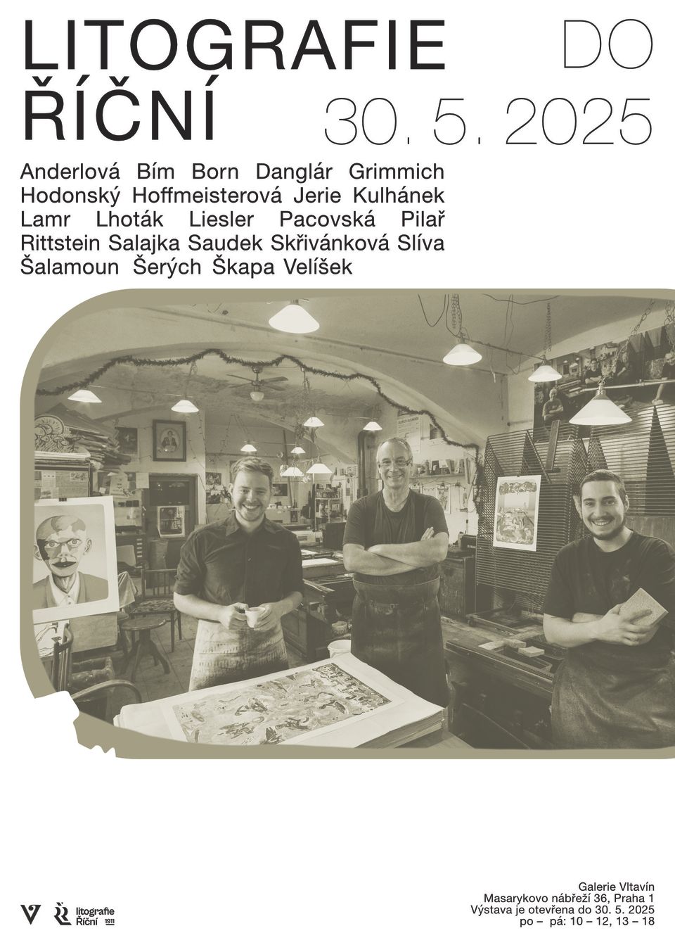 Výstava zahrnuje litografie řady autorů a také fotografie dílny Zdeňka Lhotáka. Nová kniha Litografie Říční 1911 vás provede fascinující historií dílny a zavede vás do zákulisí plného příběhů, vzpomínek a legendárních večírků, o kterých vyprávějí pamětníci. Vše doplňuje bohatý dokumentární materiál v podobě dobových fotografií a reprodukcí zde vytvořených děl.