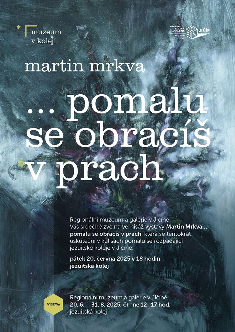Výstava …pomalu se obracíš v prach nás seznamuje s tvorbou Martina Mrkvy. Konečnost a pomíjivost akcentovanou v jeho díle ještě více umocňuje pomalu se rozpadající prostor jezuitské koleje.