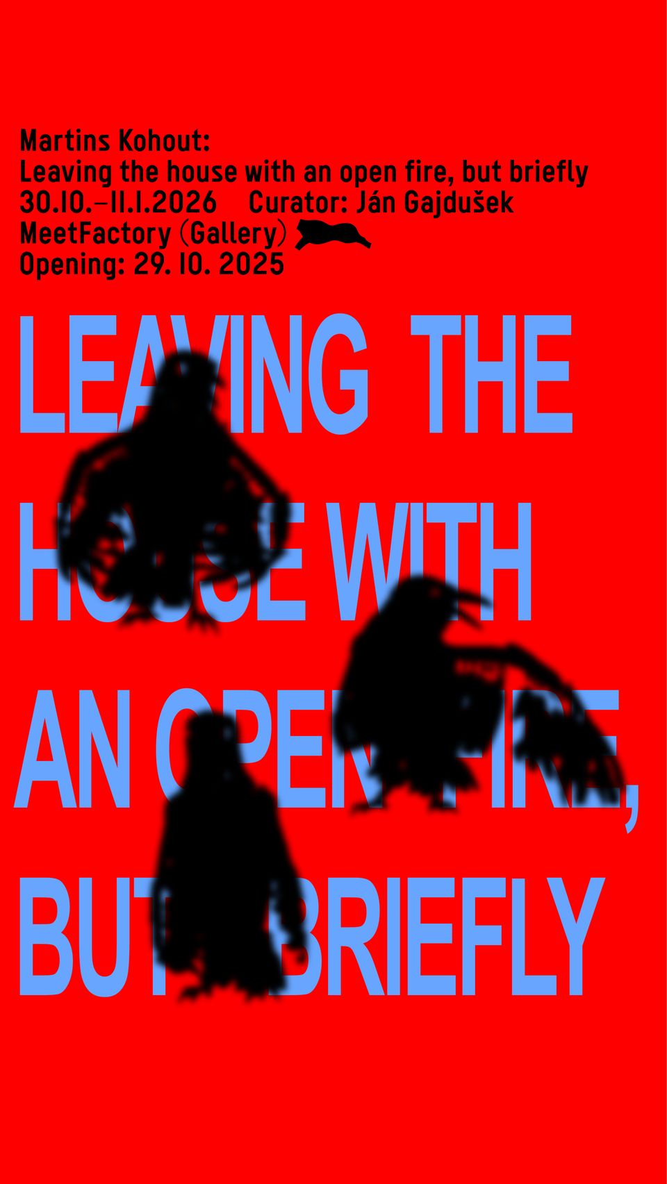 Sólová výstava Martinse Kohouta v Galerii MeetFactory s názvem Leaving the house with an open fire, but briefly je studií orientace v propojeném, a přesto neuchopitelném světě.