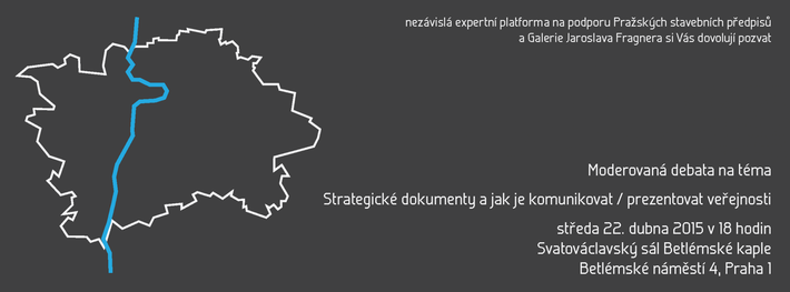 Rádi bychom Vás pozvali společným jménem nezávislé expertní plaformy na podporu Pražských stavebních předpisů a jménem Galerie Jaroslava Fragnera na moderovanou debatu, která bude probíhat ve Svatováclavském sále Betlémské kaple od 18 hod. Ústředním tématem debaty bude komunikace a prezentace strategických dokumentů veřejnosti se zaměřením na Pražské stavební předpisy. Další potvrzené hosty budeme přidávat postupně. Na debatu NENÍ třeba rezervace.