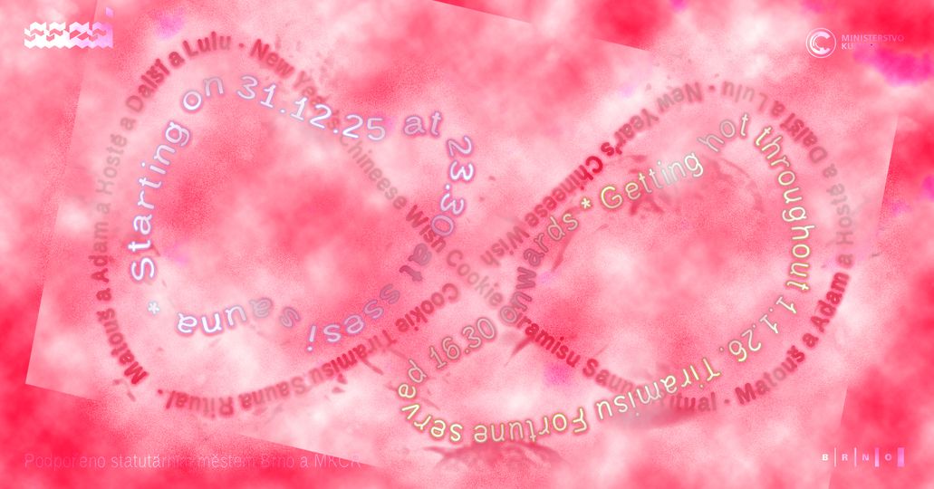 Společně vypotíme starý rok, otevřeme tělo teplem, poté se ochladíme a sdílíme dort. Každý kousek nese zprávu. Některé jsou vážné, jiné vtipné, další nečekané. Svůj osud si nevybíráte. Přijde za vámi. Teplo uvolňuje tělo. Sladkost uzemňuje smysly. Křupnutí naruší automatismus. Význam se objeví ve chvíli, kdy jste dostatečně uvolnění, abyste ho zaznamenali.