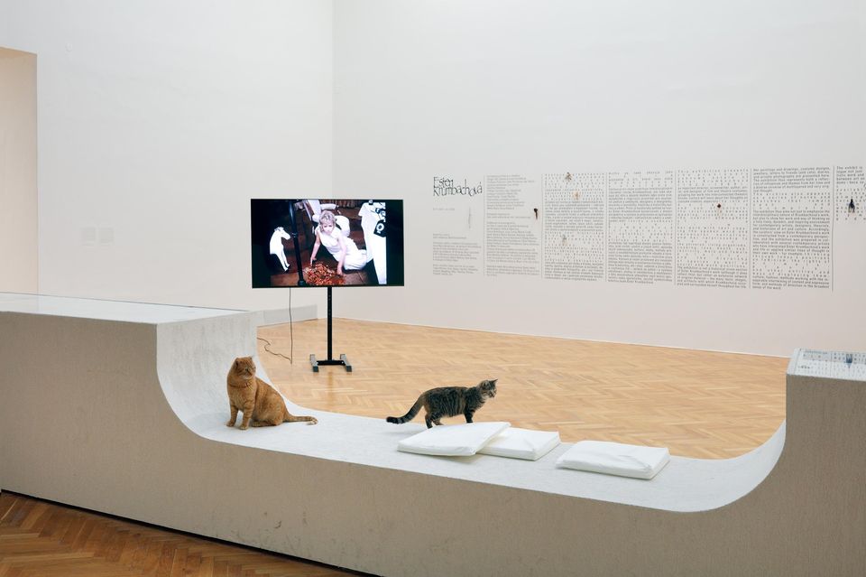 Etická rozvaha nad přítomností koček na výstavě Ester Krumbachová. V rámci diskuze se dotkneme těchto otázek a témat: Jak se mohou kočky cítit v galerii? Jak si mohou v galerii najít budoucí/ho společnici/níka? Je etické uspořádat umísťovací výstavu ve výstavě umění? Jaký problém zde sehrává status zvířete a status člověka? Jak si mohou welfare a aktivisté za práva zvířat a umění pomáhat a společně postupovat?