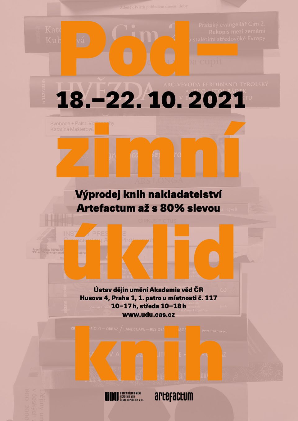 Výprodej knih nakladatelství Artefactum až s 80% slevou se uskuteční v Ústavu dějin umění AV ČR (Husova 4, Praha 1, 1. patro u místnosti č. 117) od pondělí 18. do pátku 22. října. Každý den od 10 do 17 hodin, ve středu až do 18 hodin.