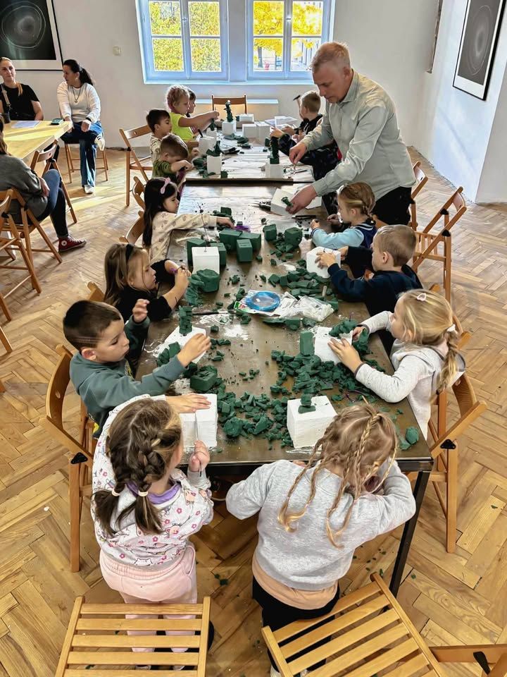 Školní děti: Základní seznámení s principy sochařské práce. Děti vytvářejí jednoduché objekty inspirované výstavou a objevují vztah plného a prázdného prostoru.