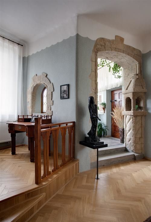 Dva menší prostory v přízemí (jídelna a pracovna) jsou pojaty intimněji, aby bylo vyhověno očekávanému zájmu návštěvníků o soukromí umělce. Převládají proto podobizny přátel a rodiny, menší formáty grafik a plastik. Prostředí jídelny a zimní zahrady bylo vybaveno podle vzoru dobových fotografií.