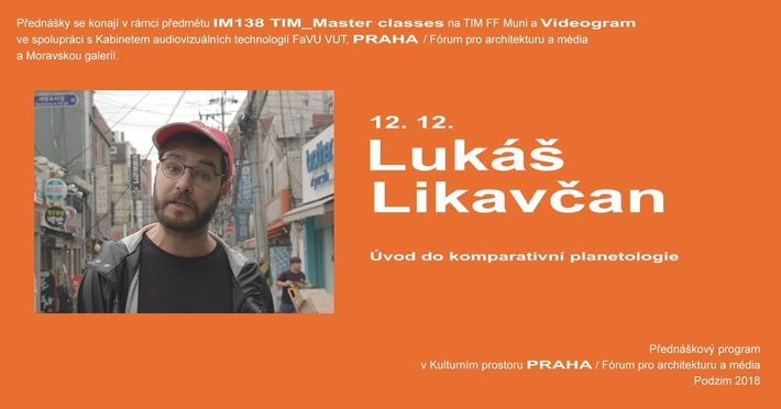 Zveme na další ze série komentovaných projekcí a přednášek Videogram a TIM Master Class, tentokrát se představí filozof, teoretik a výzkumník Lukáš Likavčan. Přednáška je součástí cyklu IM 138 TIM_Master classes (předmět vyučován v rámci oboru Teorie interaktivních médií na FF Muni v spolupráci s PRAHA / Fórum pro architekturu a média a Moravskou galerií). Videogramy se konají ve spolupráci s Kabinetem audiovizuálních technologií na FaVU VUT a Moravskou galerií v Brně. Další program na www.videogram.cz. Vstup zdarma.