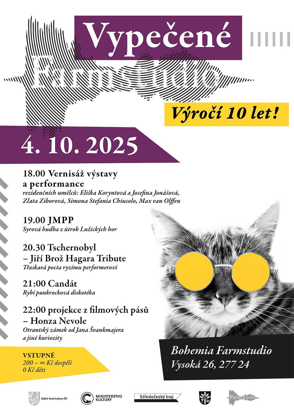 Nezávislé centrum současného umění Bohemia Farmstudio zve příznivce živého umění a všechny lidi dobré vůle k oslavě 10. výročí svého působení na kulturní scéně. Na podzimním minifestivalu současného umění proběhne vernisáž výstavy rezidenčních umělců a zahrají muzikanti ze severočeské hudební scény. Nebudou chybět nevšední performance, projekce z filmových pásu, lahůdky a posezení u ohně.