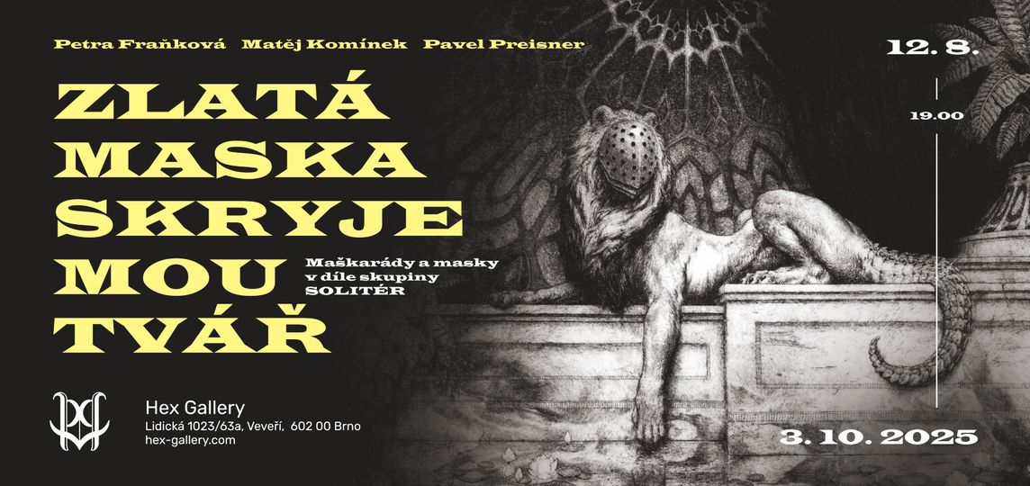 Do brněnské galerie HEX zavítá neformální umělecké uskupení SOLITÉR. Tři umělci nyní již světoví představí rozdílnost svých stylů, spojených společným tématem – masek, tajemství, skrytého posvátna. Umělecký prostor HEXu se již 12. 8. 2025 v 19:00 promění v svatyni pro ty, kteří na sebe chtějí nechat působit umění. Pro ty, kteří umění vyhledávají. I pro ty, kteří chtějí „jen“ mít nevšední zážitek.