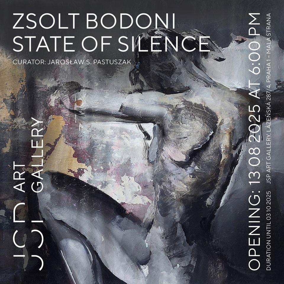 Výstava State of Silence (Stav ticha) představuje soubor děl, ve kterých Zsolt Bodoni, rumunský malíř s transylvánskými kořeny, zkoumá hranici mezi vnějším světem a vnitřní zkušeností. Obrazy – často ztišené, vrstevnaté, fragmentární – působí jako vizuální meditace, v nichž se barva stává pamětí a forma vnitřní krajinou. Ticho zde není prázdné – je naplněné minulostí, melancholií i skrytým napětím.